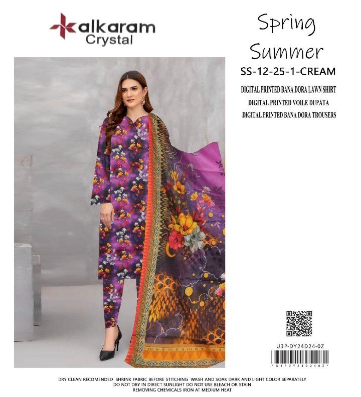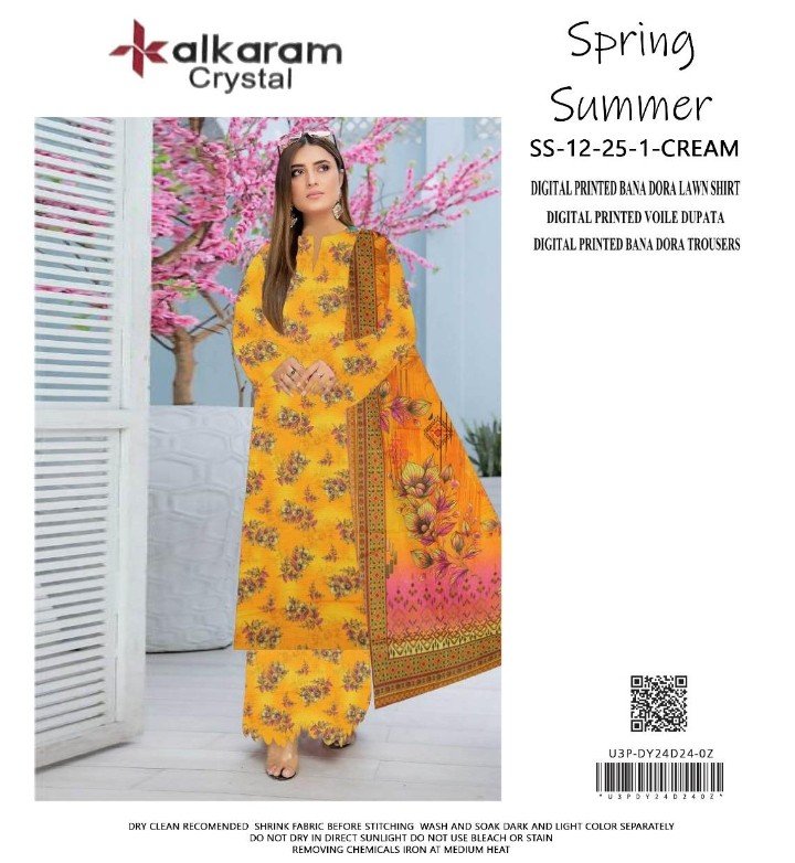 Yeh printed doria lawn suit routine wear, get‑togethers aur day events ke liye suitable choice hai. Stylish design aur neat finishing isay modern wardrobe ka essential banati hai.