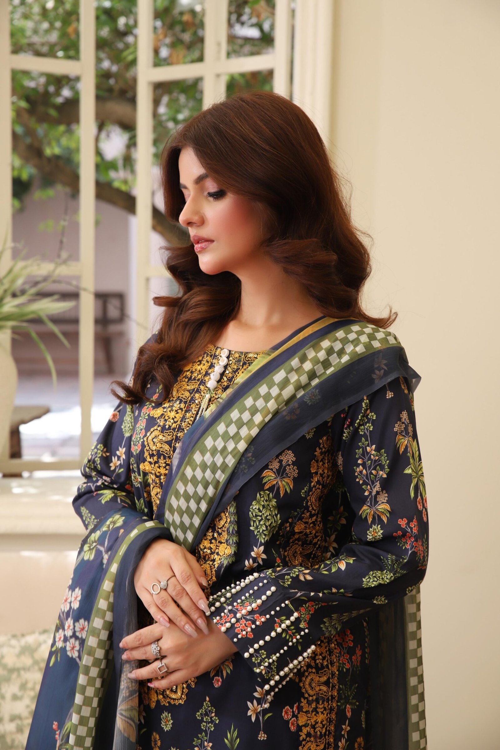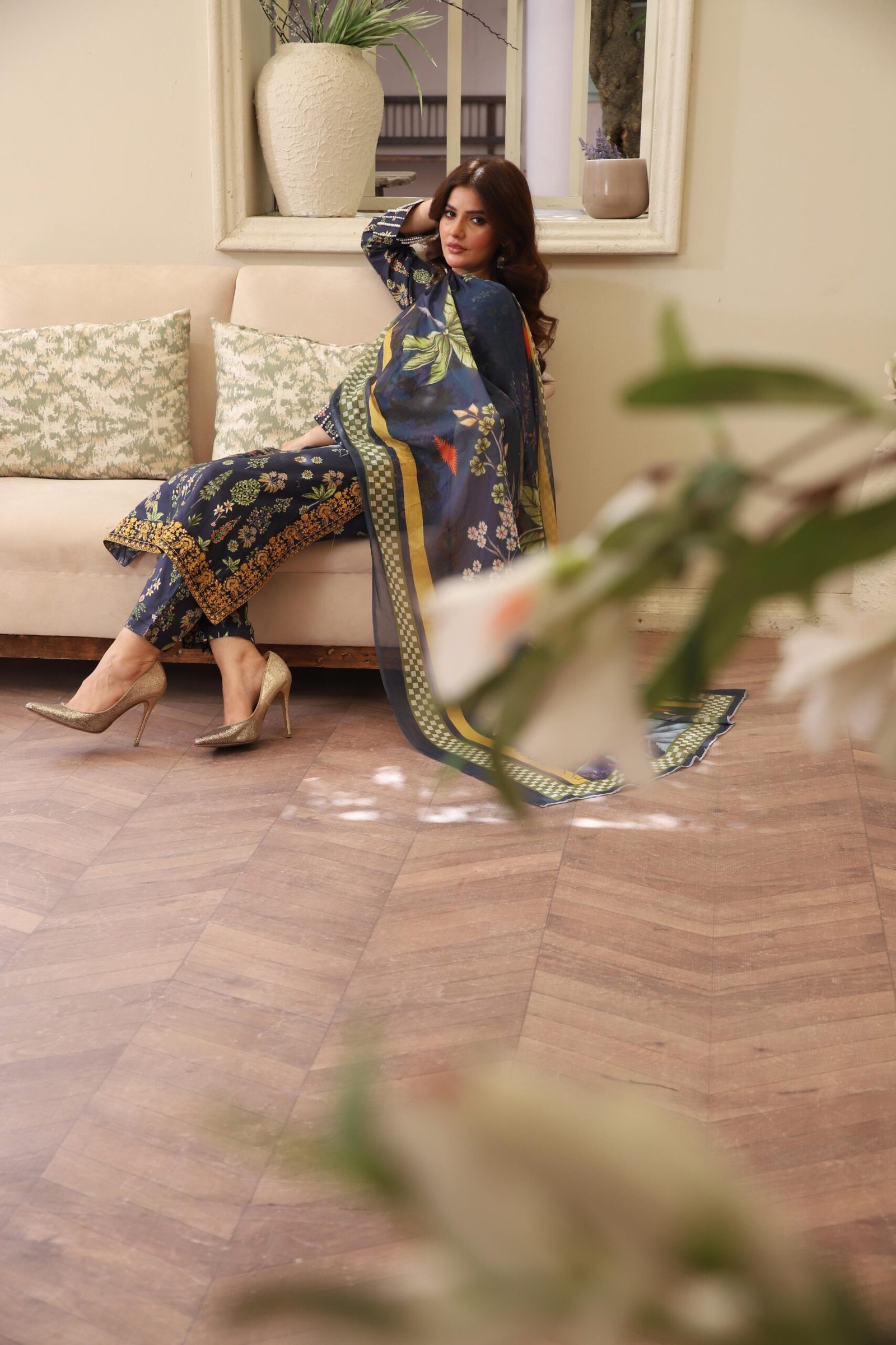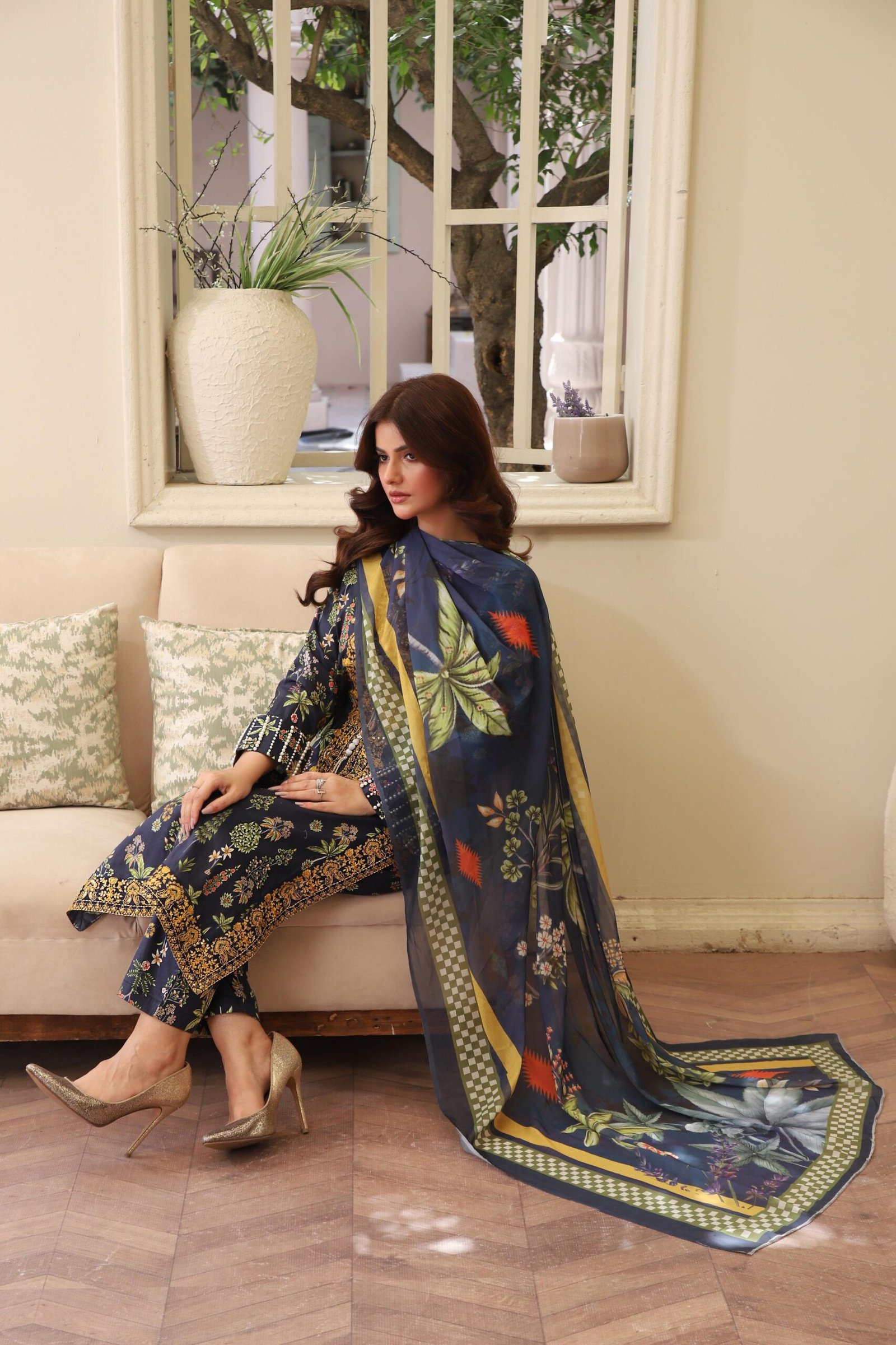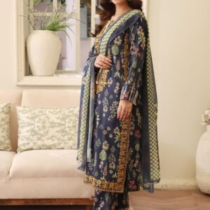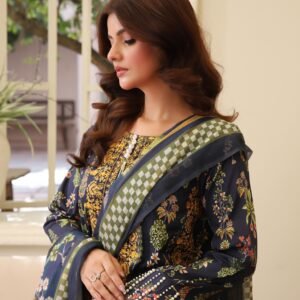 Pakistan mein embroidered lawn suits hamesha demand mein rehte hain, khas tor par blue tones jo timeless aur versatile hote hain. Is outfit ka neat finishing aur balanced stitching isay daily wear se le kar semi‑formal occasions tak adaptable banata hai.