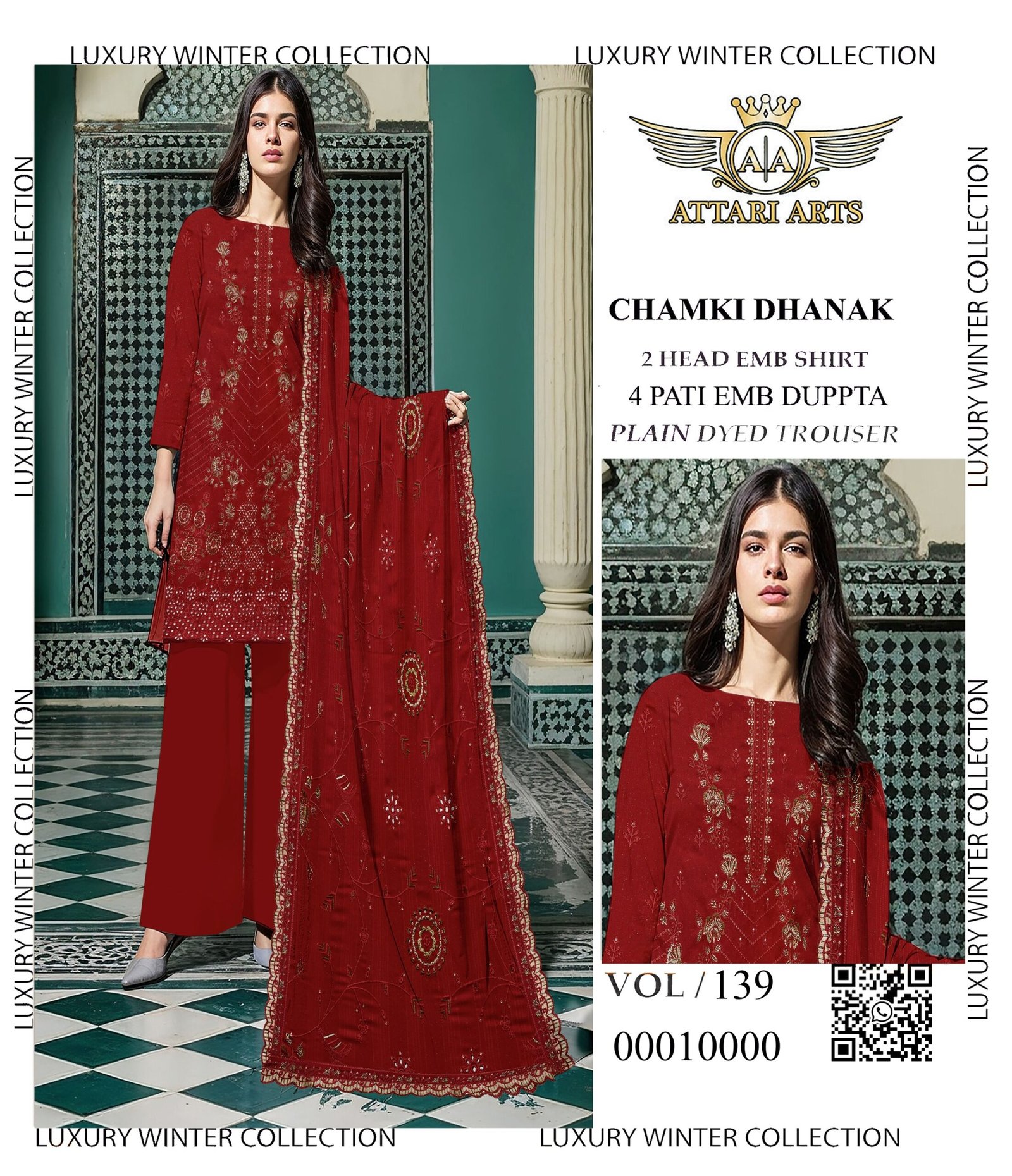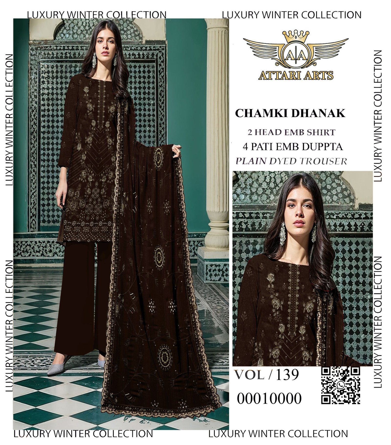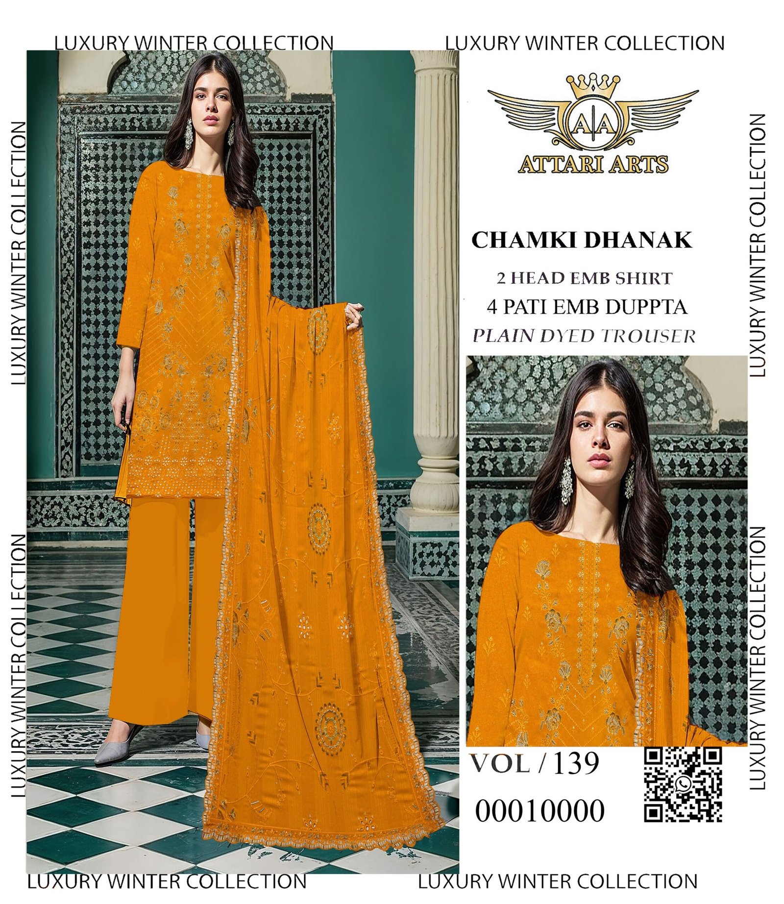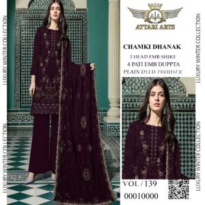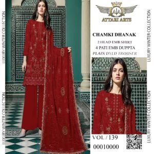 High-grade material aur expert stitching ke sath ye suit long-lasting wear offer karta hai. Chamki Dhanak fabric is lightweight, hone ke bawajood warm feel deta hai, making it ideal for winter wear. Har piece design aur detailing ka best reflection hai.