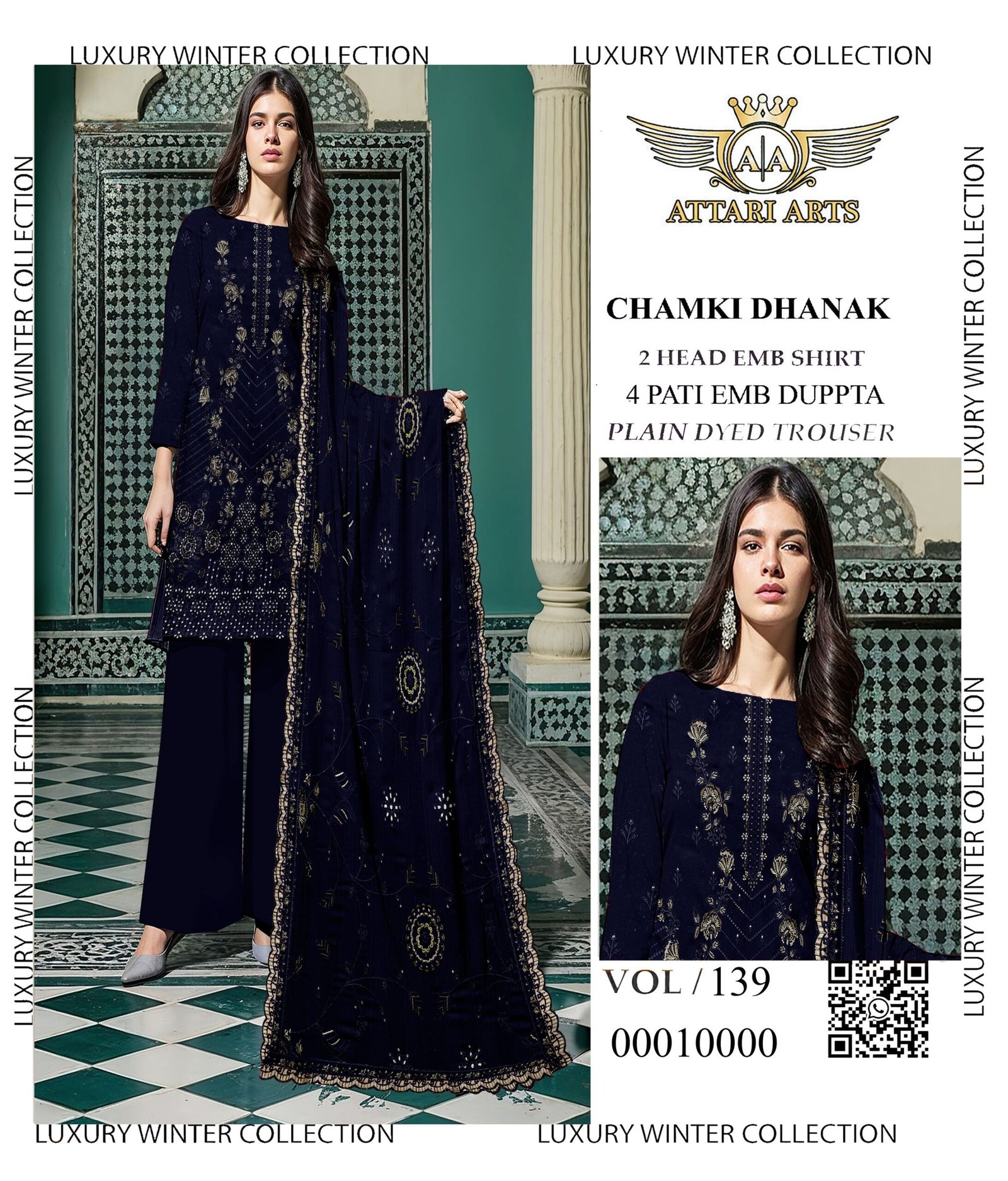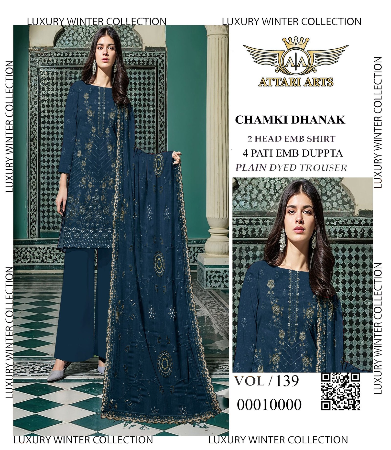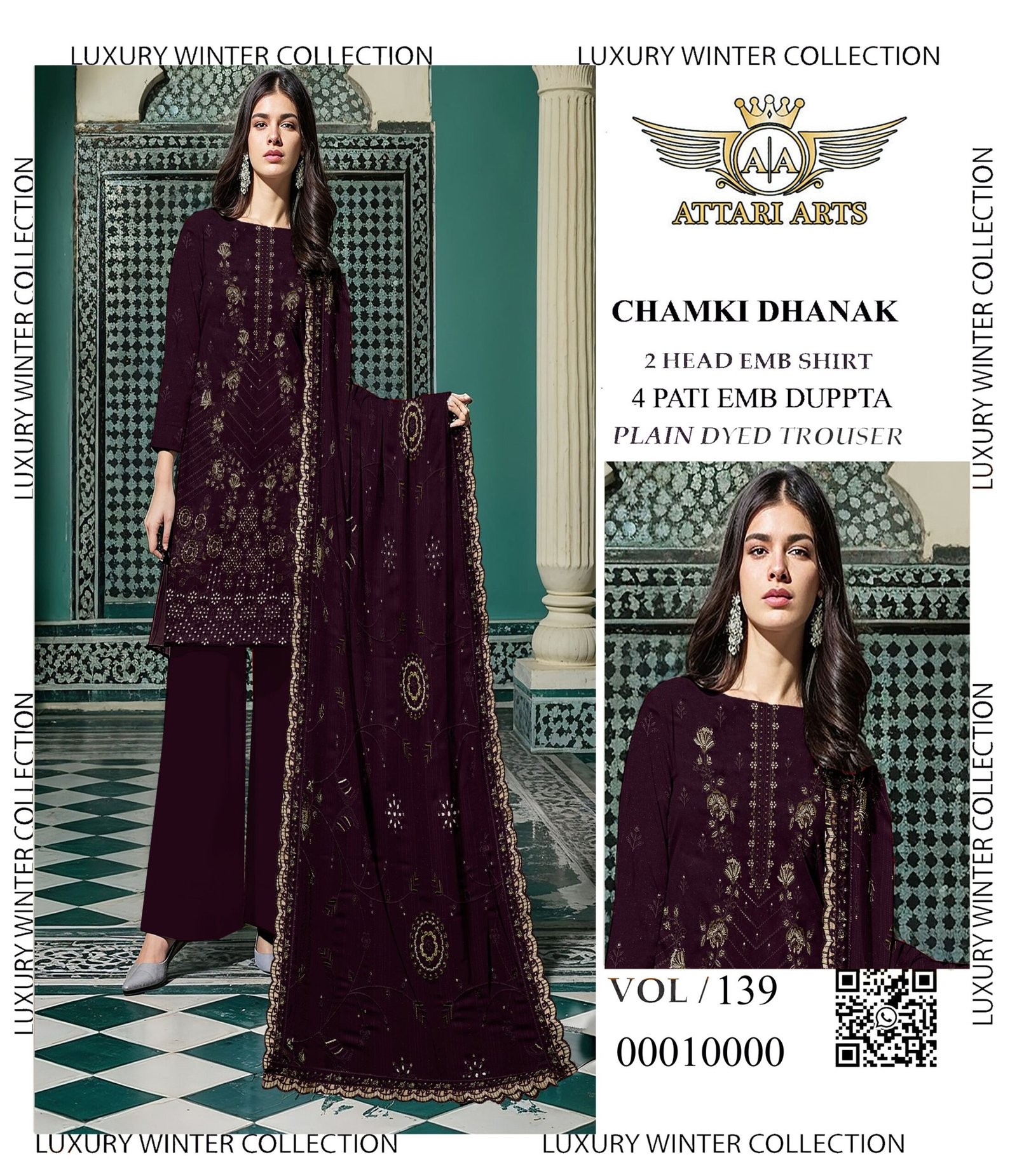 High-grade material aur expert stitching ke sath ye suit long-lasting wear offer karta hai. Chamki Dhanak fabric is lightweight, hone ke bawajood warm feel deta hai, making it ideal for winter wear. Har piece design aur detailing ka best reflection hai.