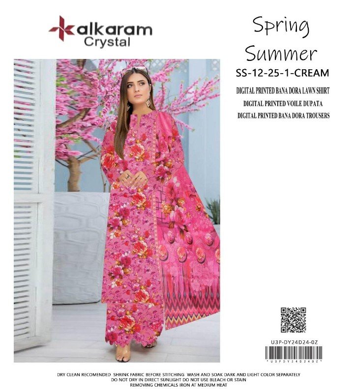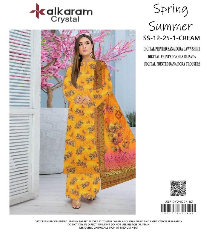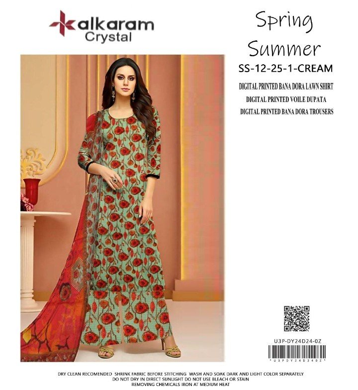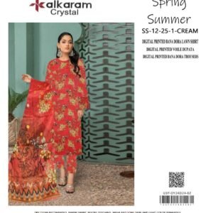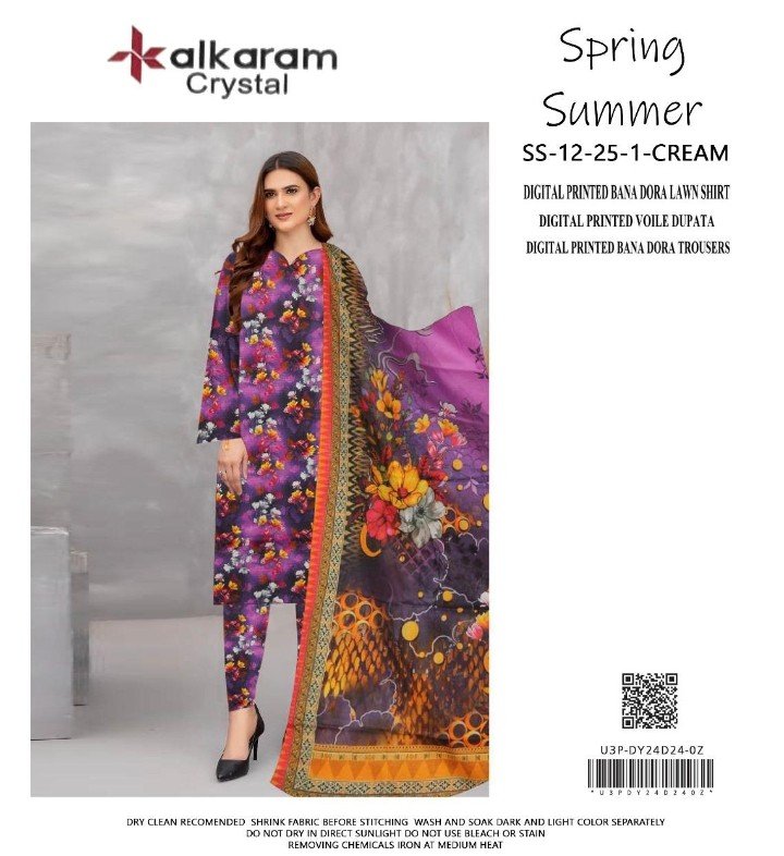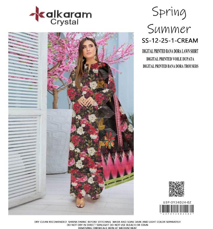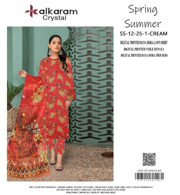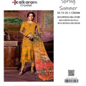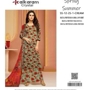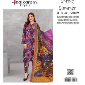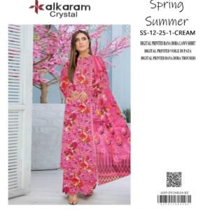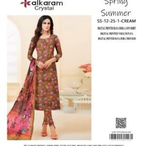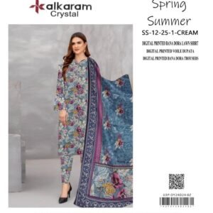Printed Lawn 3P suit summer season ke liye comfortable aur fashionable choice hai. Iska attractive printed shirt design, modern look, detail hai jo daily wear ke liye perfect hai.