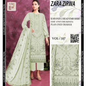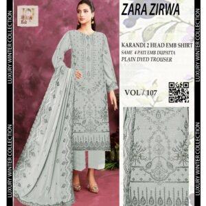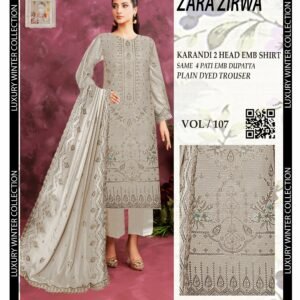 Pair it with sleek accessories or minimalist footwear to complete your personalized winter statement. Whether a gift for yourself or a loved one, the Winter Karandi Embroidered 3Pc Suit – Luxury Edition | VOL107 epitomizes refinement and adds a touch of luxury to every winter wardrobe.
