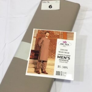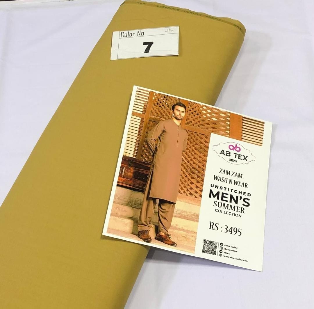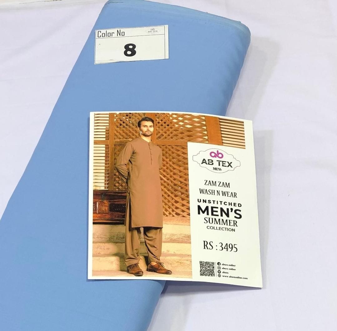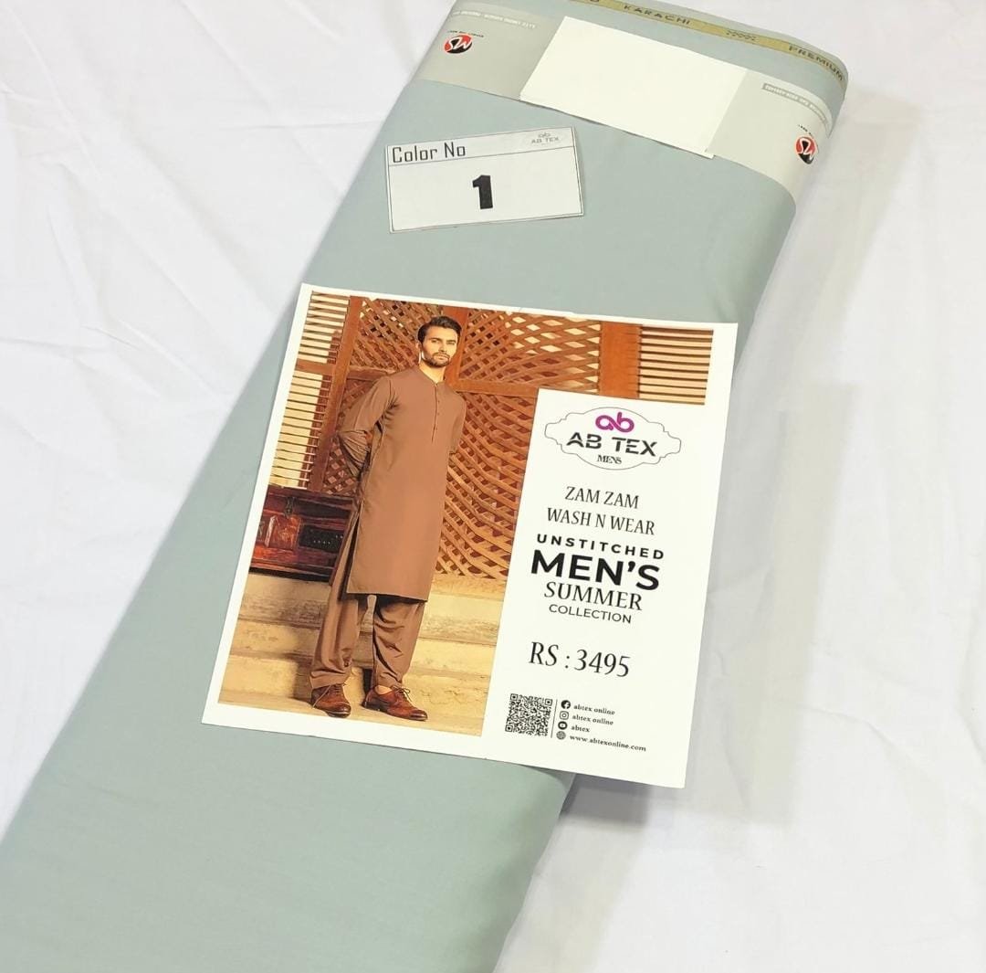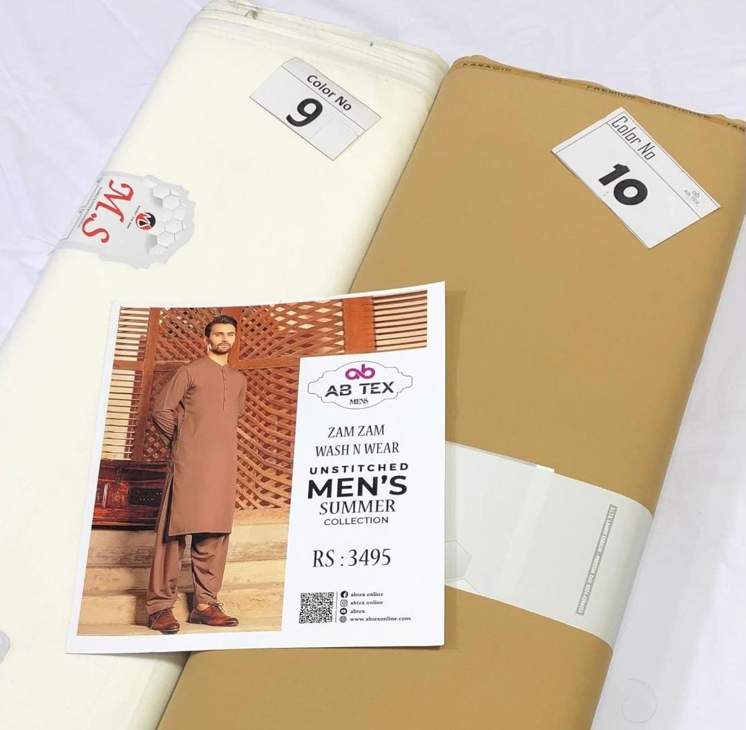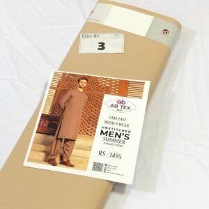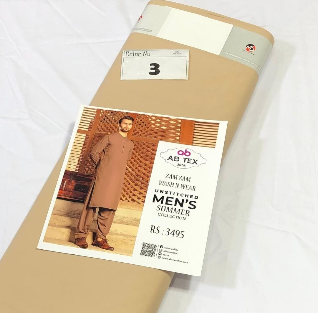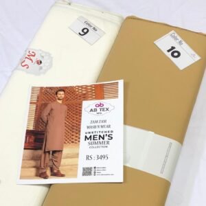 Zam Zam Wash n Wear fabric is designed for the summer season. Made from high-quality material, this fabric comes in cool shades, ideal for hot weather. The 4-meter full Shalwar Kameez, with a width of 54-56 inches, ensures a complete outfit. Its plain wash n wear nature makes it easy to maintain. Each piece is packed with an inlay card, brand bag, and price tag, reflecting the authenticity and quality of the product.